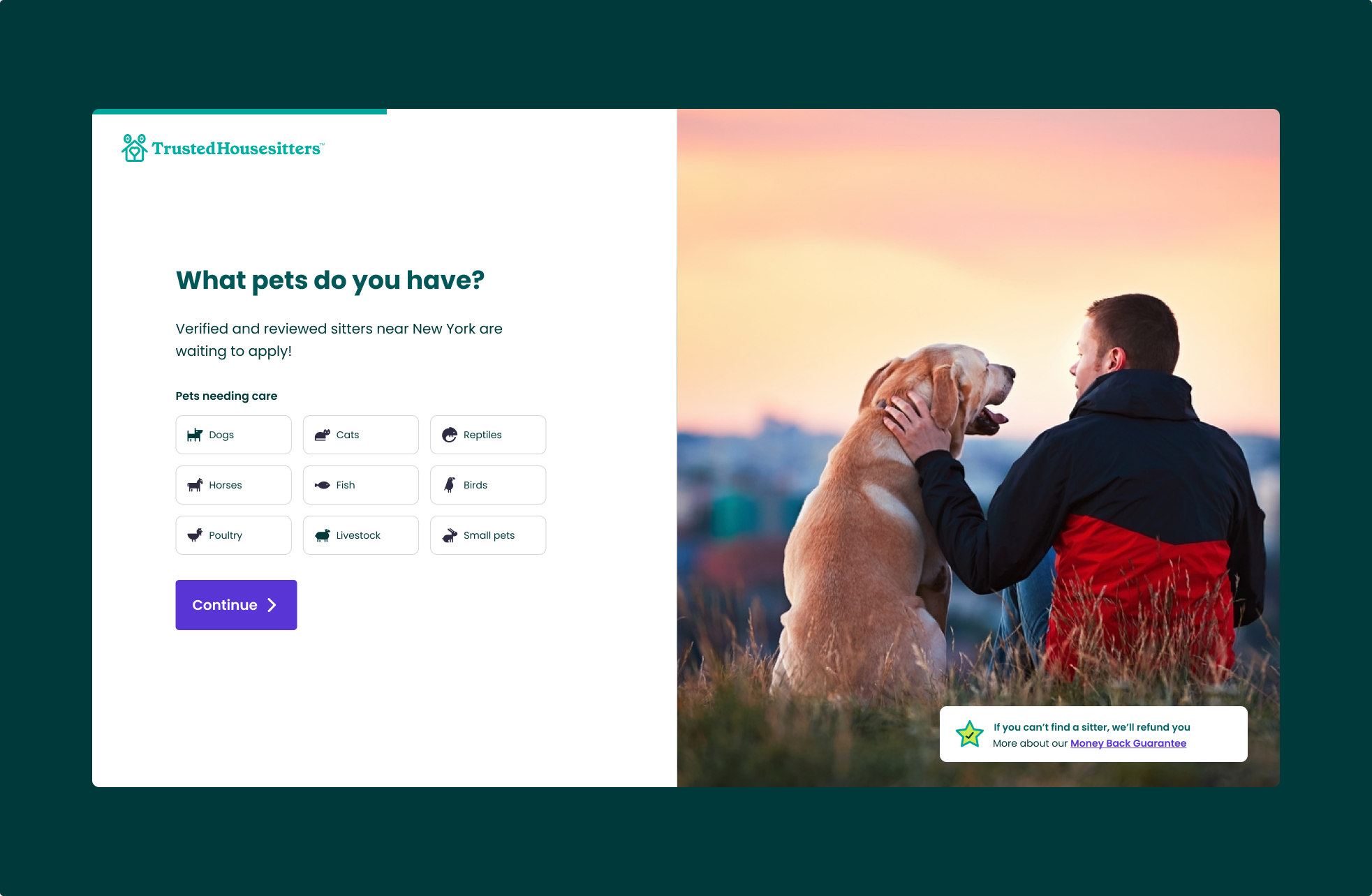 A popup survey was launched on the “Find a sitter” page, a key page in the flow for new Pet Parents. This was targeted at users who had visited the site multiple times, attempting to target high-intent users.