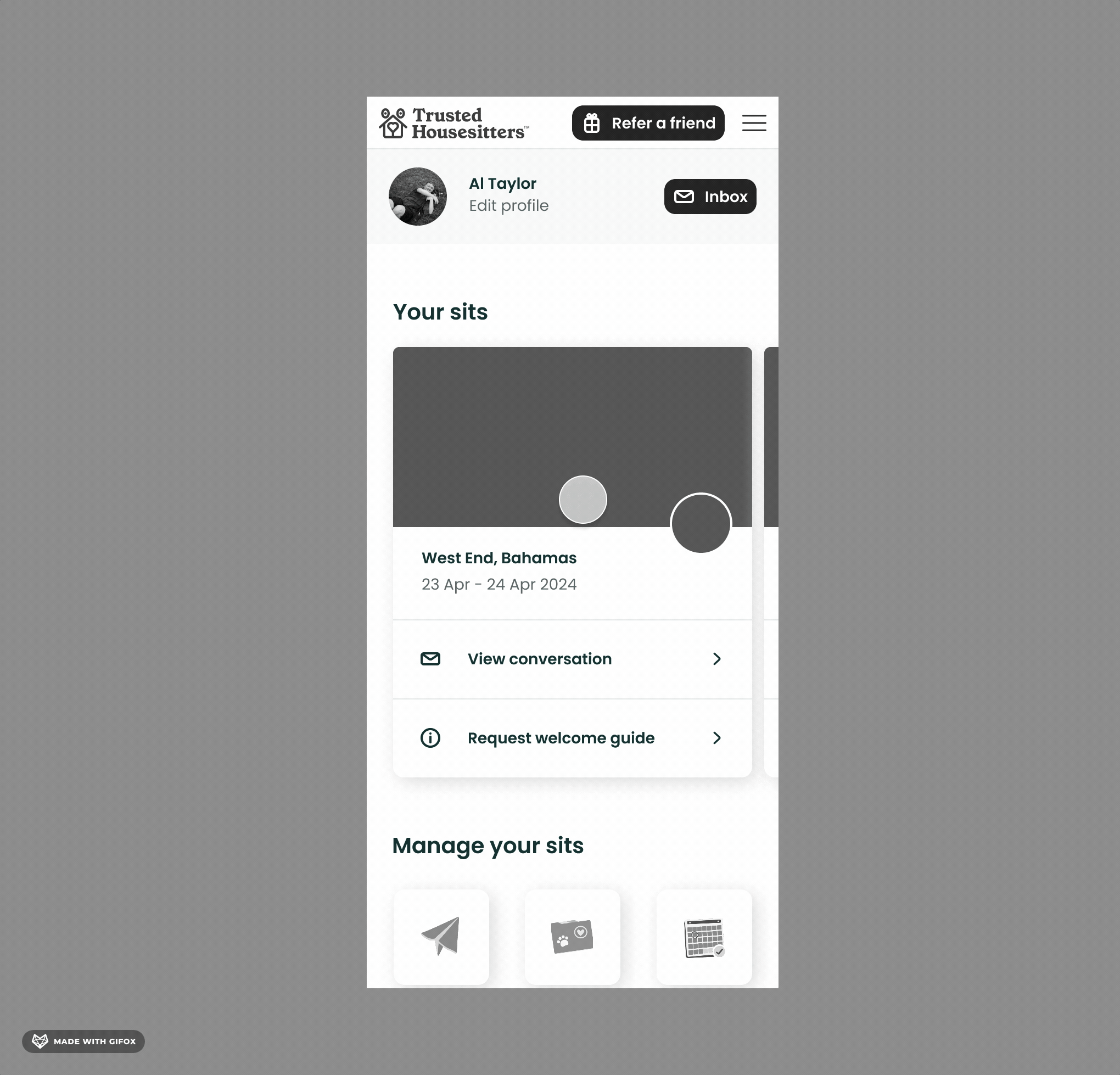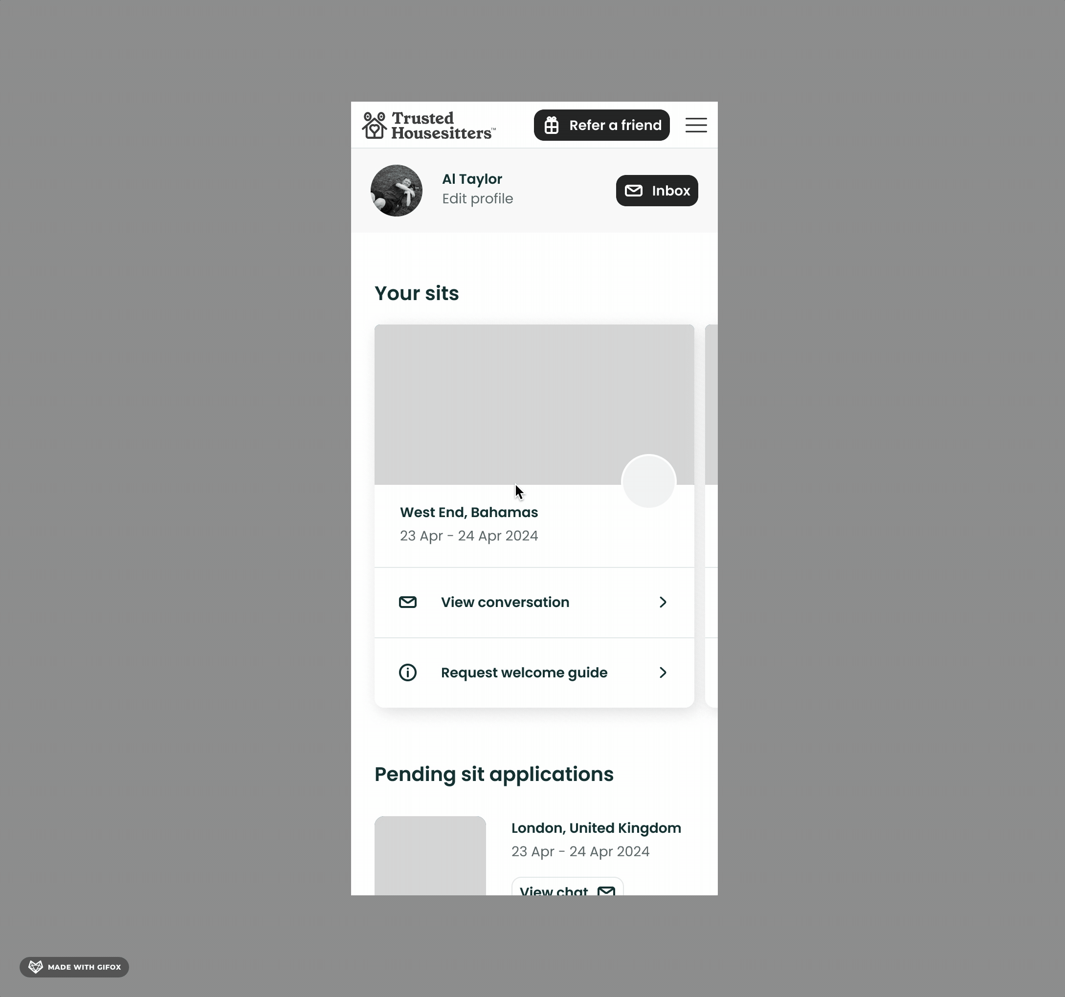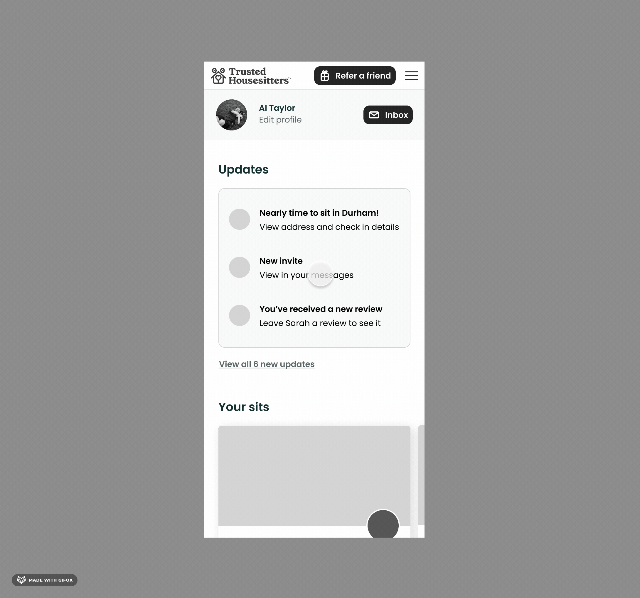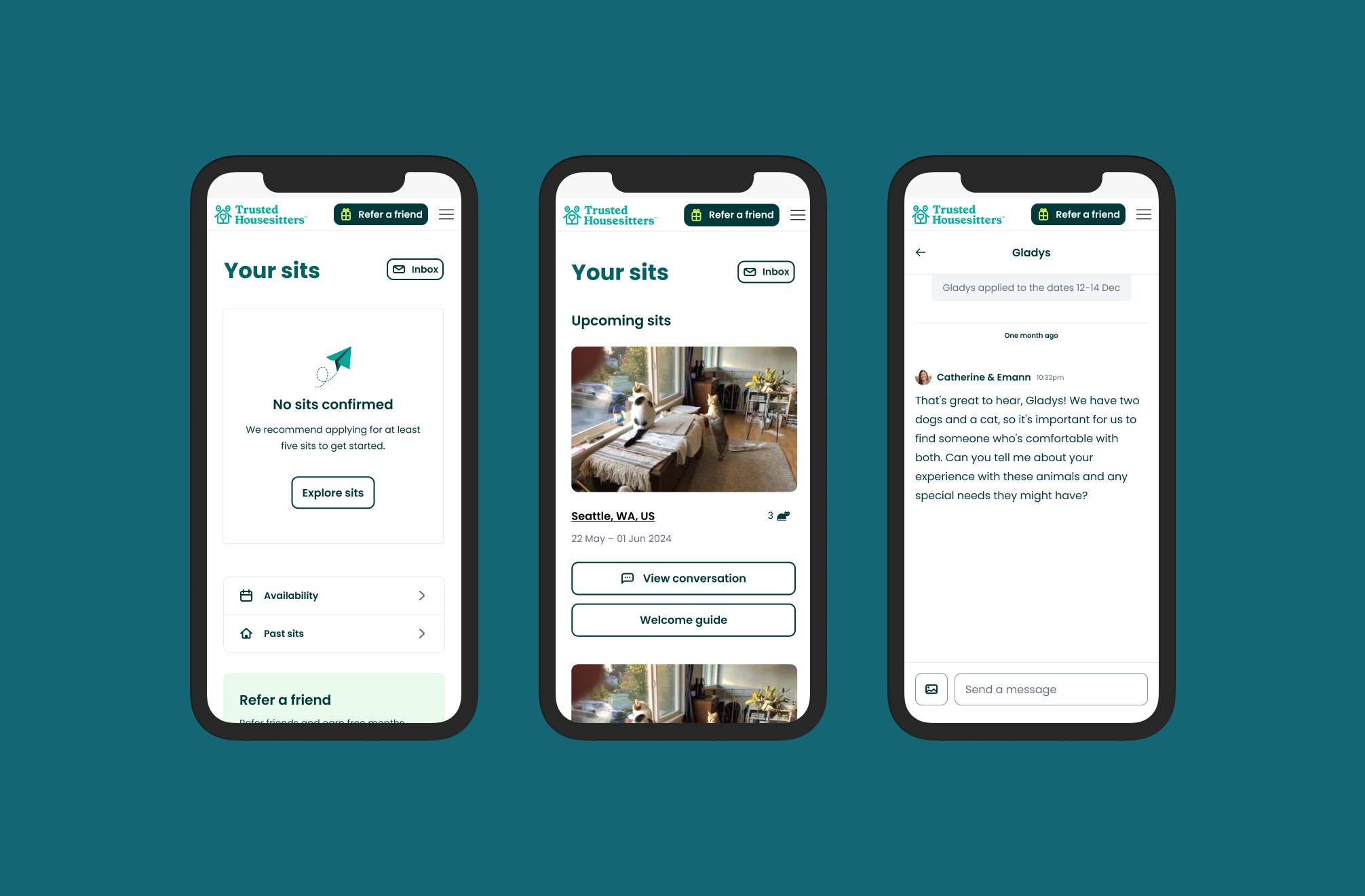 Using the design system, I built out the final design ready for usability testing, Only two new components had to be created and added to the system: the refer a friend card and sitter benefit cards.