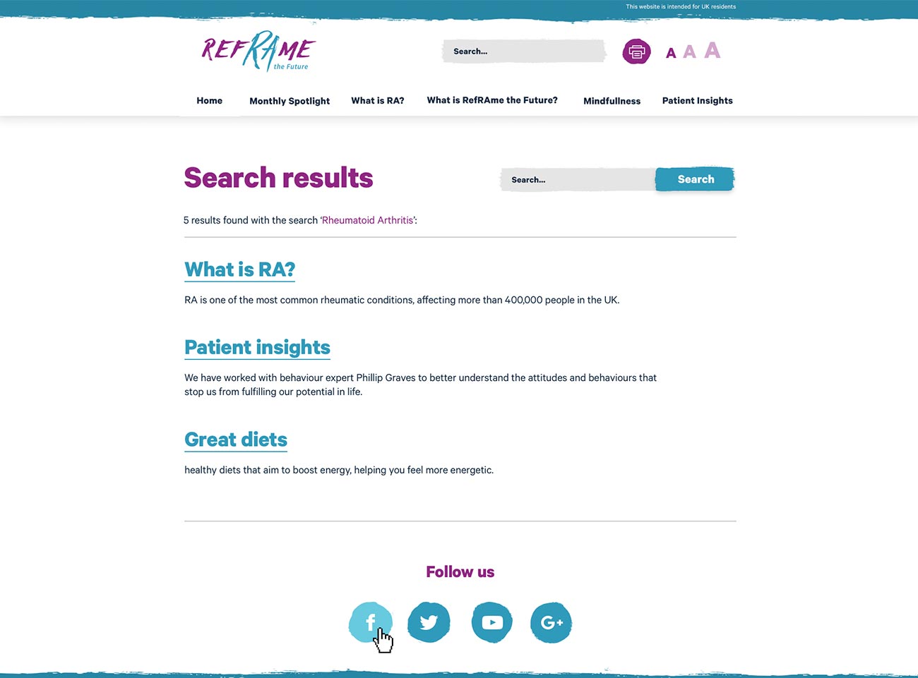 Unlike standard arthritis, rheumatoid is more likely to strike at middle age than old age, so I was careful not to aim the content and design to an elderly audience.